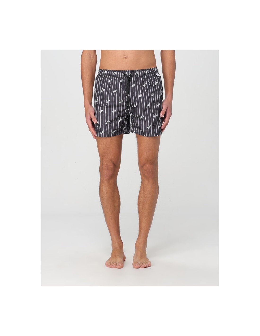 Costume con motivo gessato e logo GCDS all-over. Il modello presenta vita elasticizzata con coulisse regolabile, tasche laterali e fodera interna in rete.